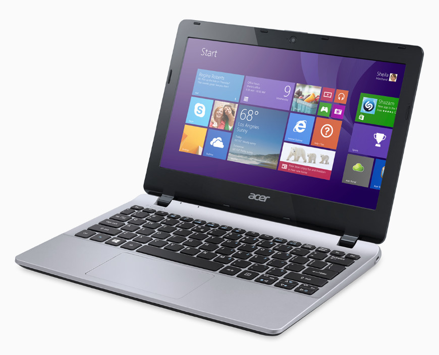 Kế tiếp là hai model laptop nhỏ nhẹ phù hợp cho người dùng thường xuyên di chuyển: Aspire V 11 và E 11. Hai sản phẩm này sở hữu thiết kế mà Acer gọi là FlowCurve và chúng không sử dụng quạt tản nhiệt. Cả hai đều được trang bị màn hình 11,6" độ phân giải 13366 x 768 (mẫu V 11 có thêm tấm nền cảm ứng), bàn phím kích thước đầy đủ, tùy chọn CPU Intel Pentium hoặc Celeron, RAM tối đa 8GB, HDD cao nhất 1TB. Tất cả gói gọn trong thân hình mỏng 21,2mm và nặng chỉ 1,29kg. Aspire E 11 sẽ bán ra vào tháng 6 với giá từ 269$, còn Aspire V 11 có giá từ 369,99$.