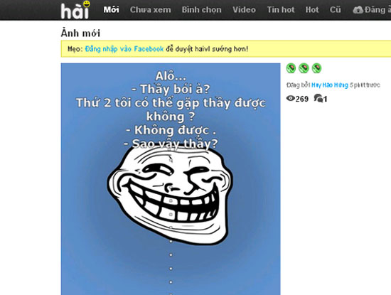 Haivl.com được biết đến là một trong những trang web có lượng truy cập hàng đầu tại Việt Nam với lượng fan đông đảo, chủ yếu là giới trẻ, chuyên chia sẻ những bức ảnh, những câu chuyện hài hước, trào phúng, độc đáo của Việt Nam và thế giới. Đây cũng chính là nơi “khởi nguồn” cho nhiều trào lưu, câu nói… có sức ảnh hưởng lớn tới cộng đồng mạng Internet.