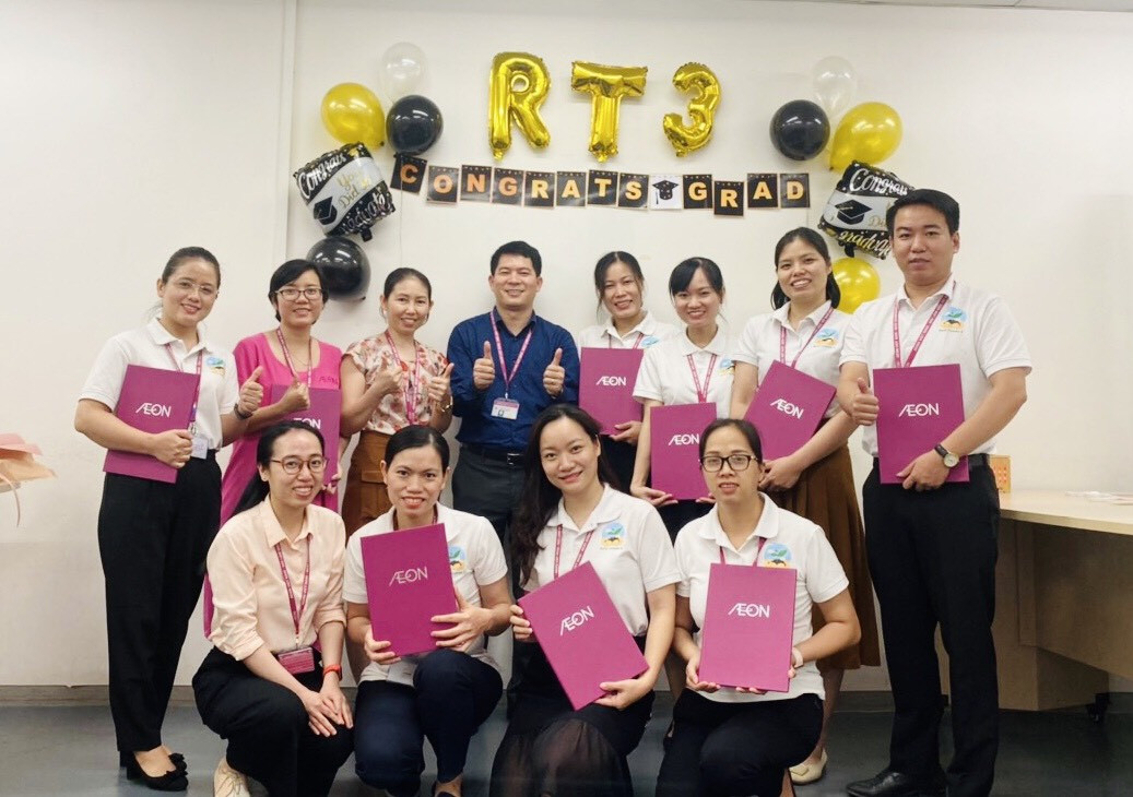 Để đáp ứng nhân sự cho các chiến lược mở rộng phát triển kinh doanh, AEON Việt Nam liên tục đào tạo và phát triển nguồn nhân lực chất lượng. Đây được xem là phúc lợi lớn và bền vững nhất mà AEON Việt Nam cam kết mang đến cho toàn thể nhân viên. Để nhân viên có thể chủ động học hỏi và nâng cao kỹ năng chuyên môn, AEON Việt Nam phát triển hệ sinh thái đào tạo đa dạng từ phương pháp, mô hình và hình thức ….