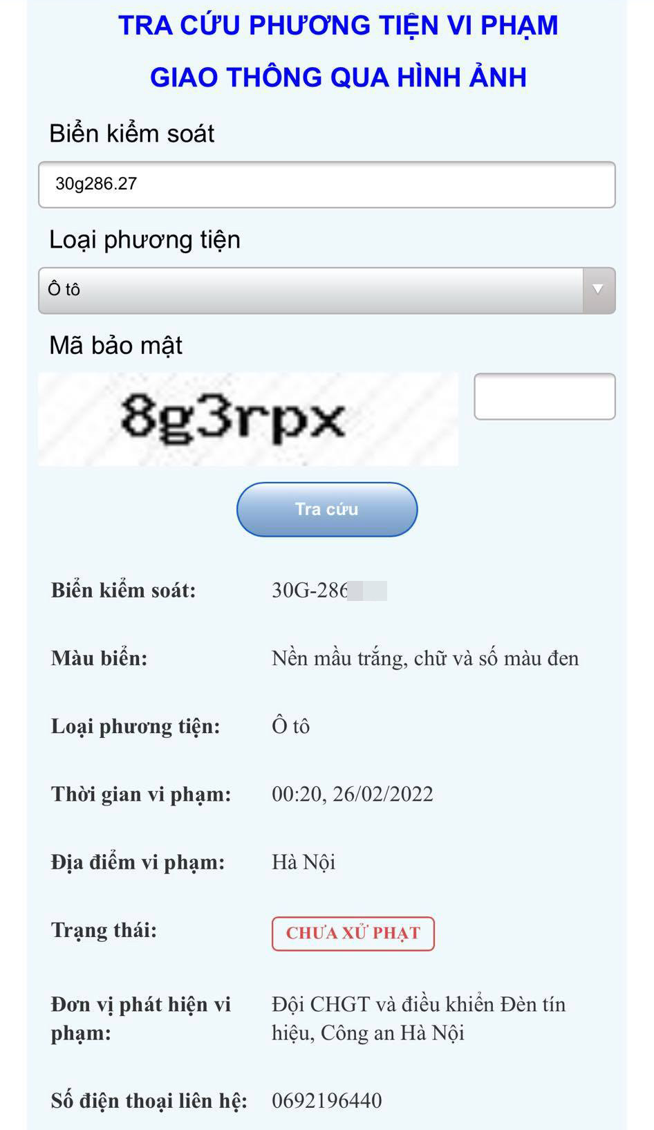 Anh Trần Thanh Tùng (Đông Anh, Hà Nội) khá ngỡ ngàng khi tình cờ tra cứu đã phát hiện ô tô mang BKS 30G – 286.XX của mình được thông báo vi phạm.