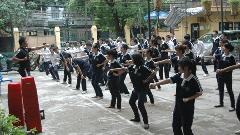 | Bên cạnh kiến thức, học sinh rất cần được trang bị về kĩ năng và giá trị sống. Trong ảnh: HS Trường THPT dân lập Đinh Tiên Hoàng trong tiết thể dục. |