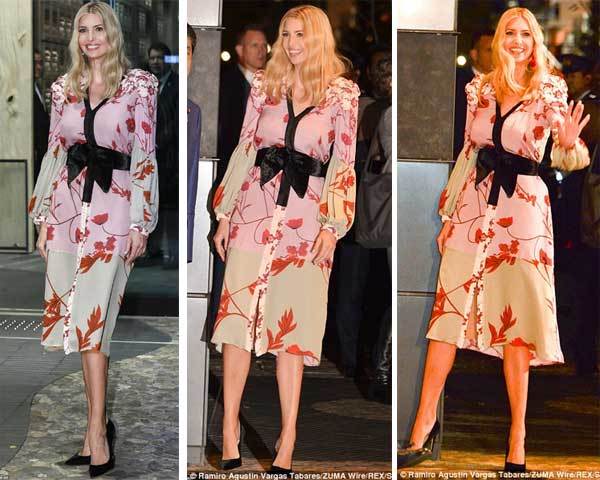 Chiếc váy màu hồng, dài tới đầu gối, với họa tiết hoa lá cùng thắt lưng đen của Ivanka dường như được gợi ý từ trang phục truyền thống của Nhật vào thời Heian, khoảng giữa thế kỷ 8-12.