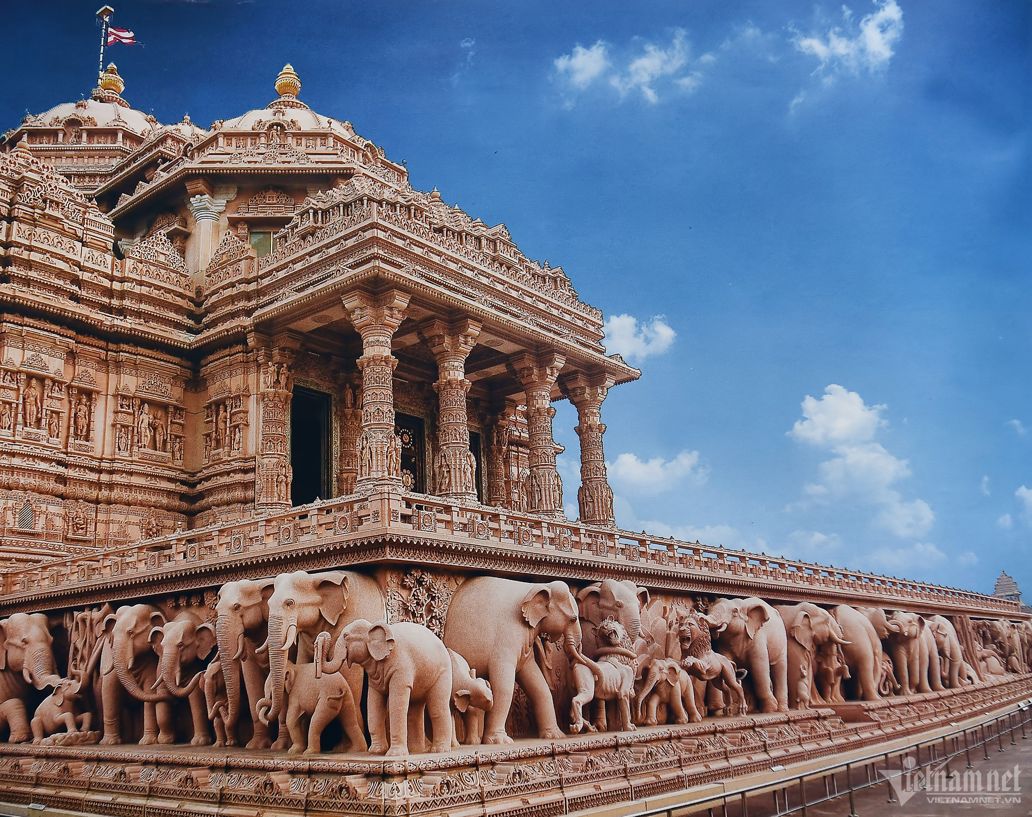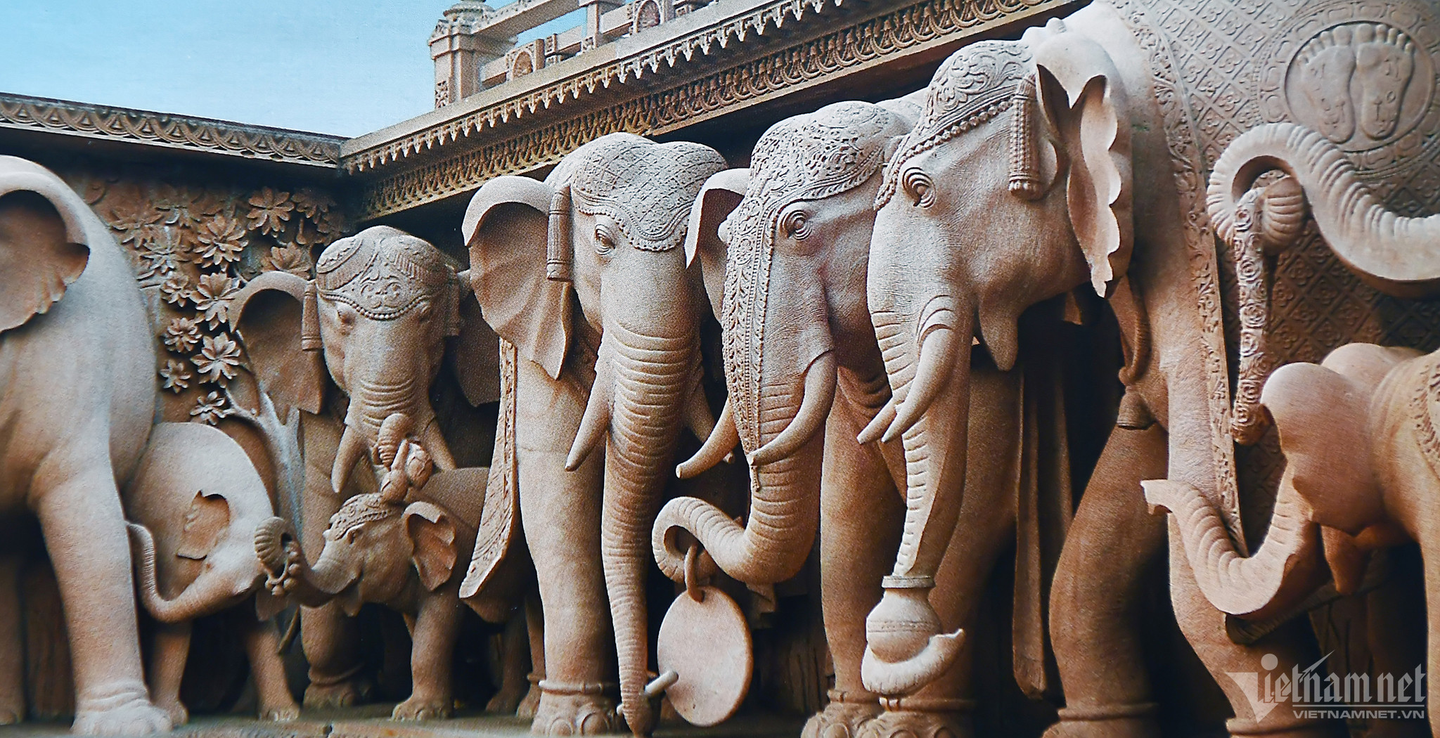 Trong đó nhiều voi to bằng kích cỡ thật, nặng 3.000 tấn, thể hiện tầm quan trọng của hình tượng voi trong văn hóa và lịch sử Ấn Độ giáo, tượng trưng cho hòa bình.