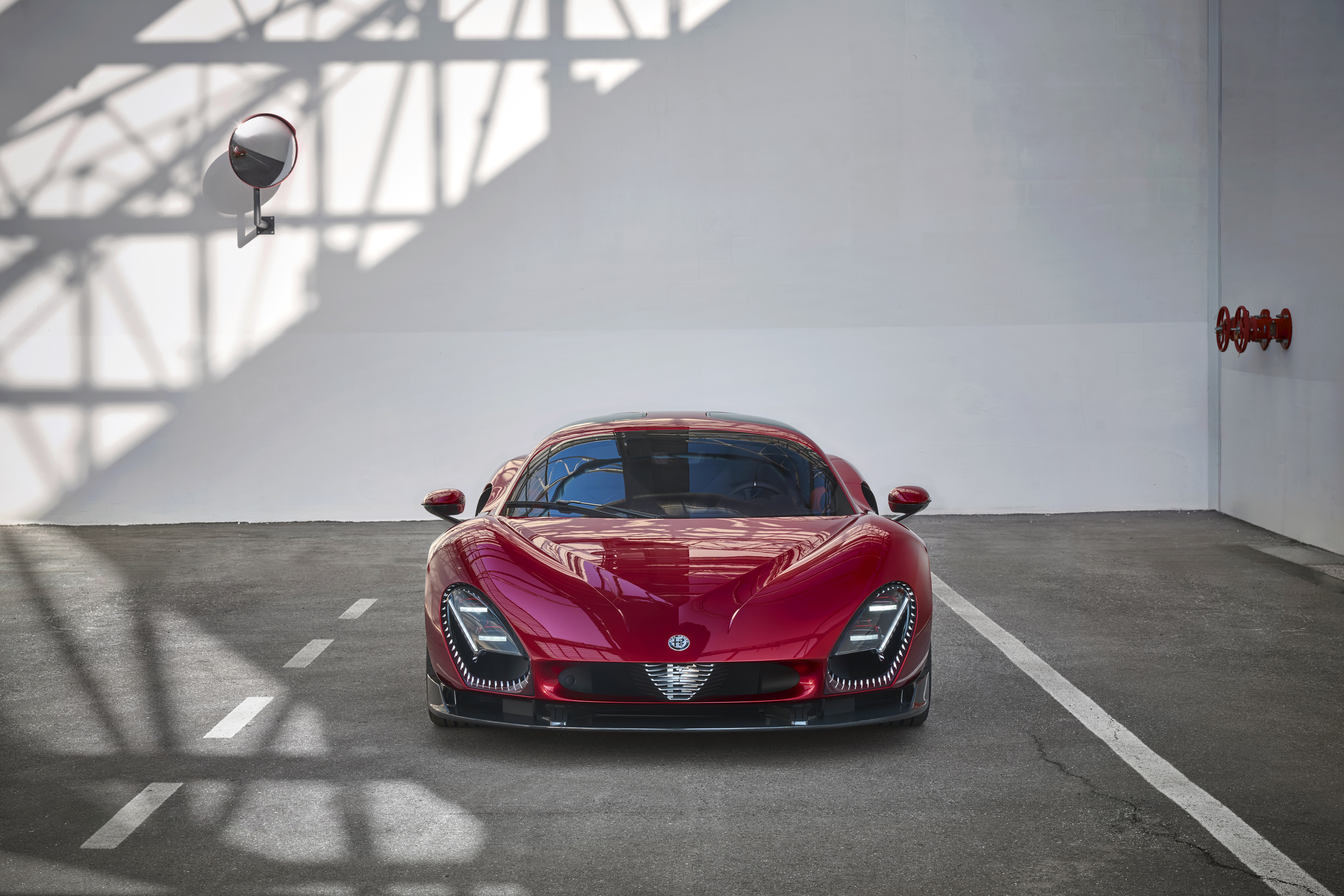 Thiết kế của chiếc siêu xe được lấy cảm hứng từ huyền thoại Alfa Romeo 33 Stradale đời 1967 với nhiều chi tiết ngoại thất và nội thất đặc trưng.