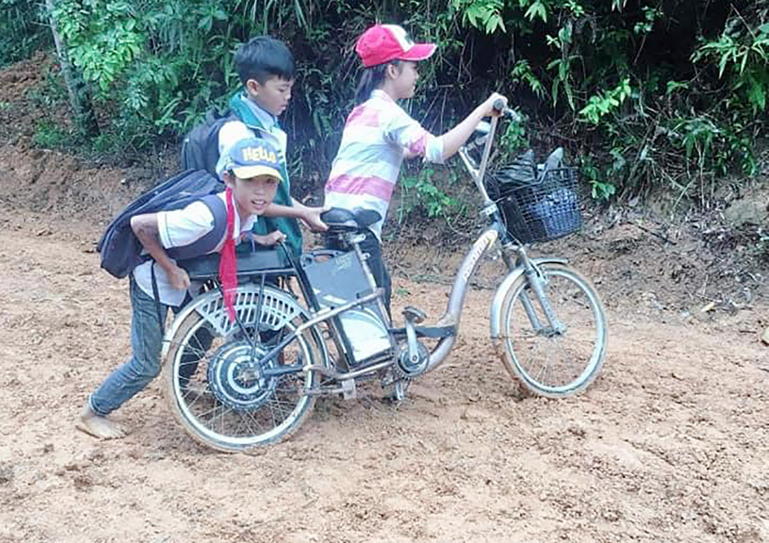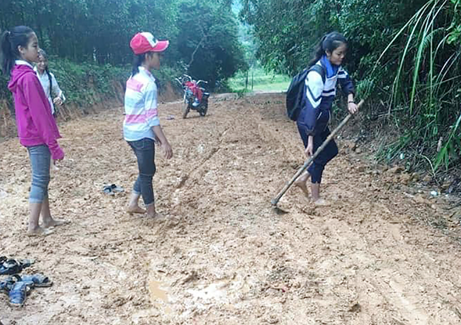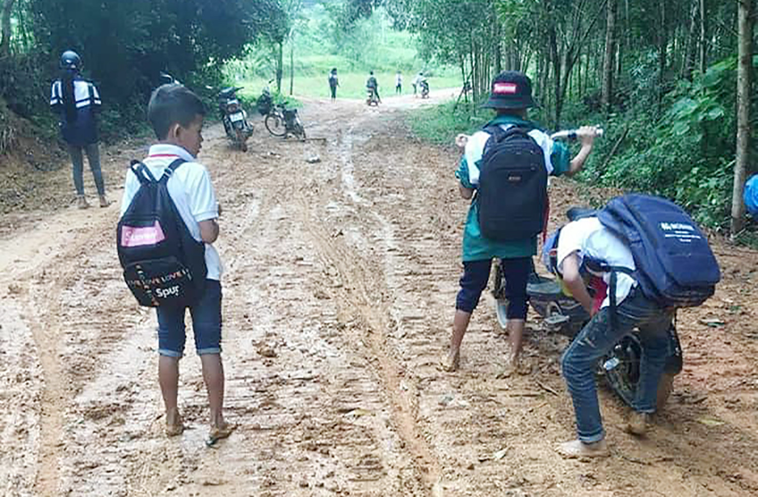 “Là con đường huyết mạch của xóm, nhiều phương tiện qua lại kể cả những phương tiện có trọng tải lớn phục vụ nông, lâm nghiệp, kèm với điều kiện thời tiết khắc nghiệt của miền Trung, đường ngày càng xuống cấp trầm trọng. Các học sinh vô cùng vất vả để đến trường…”, M.Đ - người đăng tải hình ảnh lên mạng xã hội, cho biết.