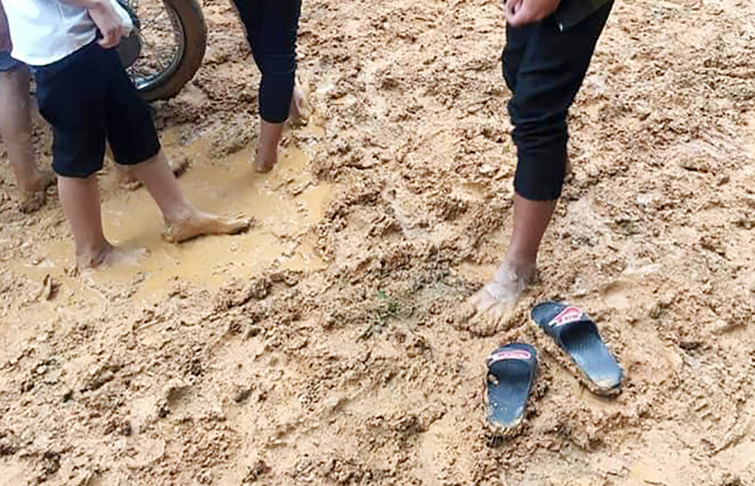 Những ngày mưa, ví dụ như mấy hôm vừa qua, tình trạng bùn đất lầy lội vẫn xảy ra, gây khó khăn khi di chuyển.