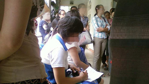 | Một cô gái đang viết đơn xin phá thai tại Trung tâm tư vấn sức khỏe và kế hoạch