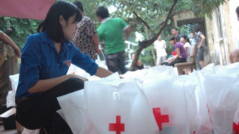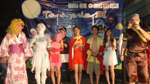 | Những sinh viên tình nguyện của hội "Lá me xanh" đang chuẩn bị chu đáo cho đêm trung thu |