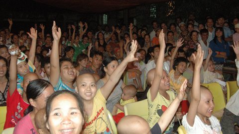 Trong không khí rộn ràng tiếng trống múa lân, trò chơi câu đố hài hước, hay câu chuyện về sự tích rước đèn đêm trung thu đầy thú vị, các bé đã có những giây phút ấm áp, ngọt ngào yêu thương, quên đi những cơn đau vẫn luôn hành hạ bởi căn bệnh ung thư quái ác. Gương mặt bé nào cũng rạng rỡ nụ cười khi được xem những màn biểu diễn kịch, văn nghệ, hóa trang của các tình nguyện viên. Với bé Văn Khanh, quê ở Bắc Ninh, mùa trung thu này là trung thu đầu tiên em ở viện K, em nói với tôi bằng cái giọng trong veo, hồn nhiên: “Trung thu ở đây vui hơn ở nhà, vì có nhiều bạn”.