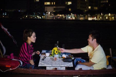 lời cầu hôn lãng mạng trên sông cùng với hoa và nến là những gì anh và những