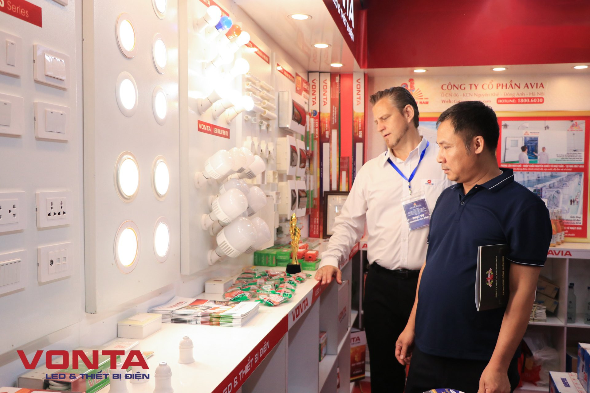 Ghé thăm gian hàng của VONTA tại Phổ Yên, khách hàng được trực tiếp trải nghiệm những sản phẩm đèn Led và thiết bị điện với sự hướng dẫn và tư vấn tỉ mỉ từ các kỹ sư nhà máy và đại diện thương mại khu vực Thái Nguyên.