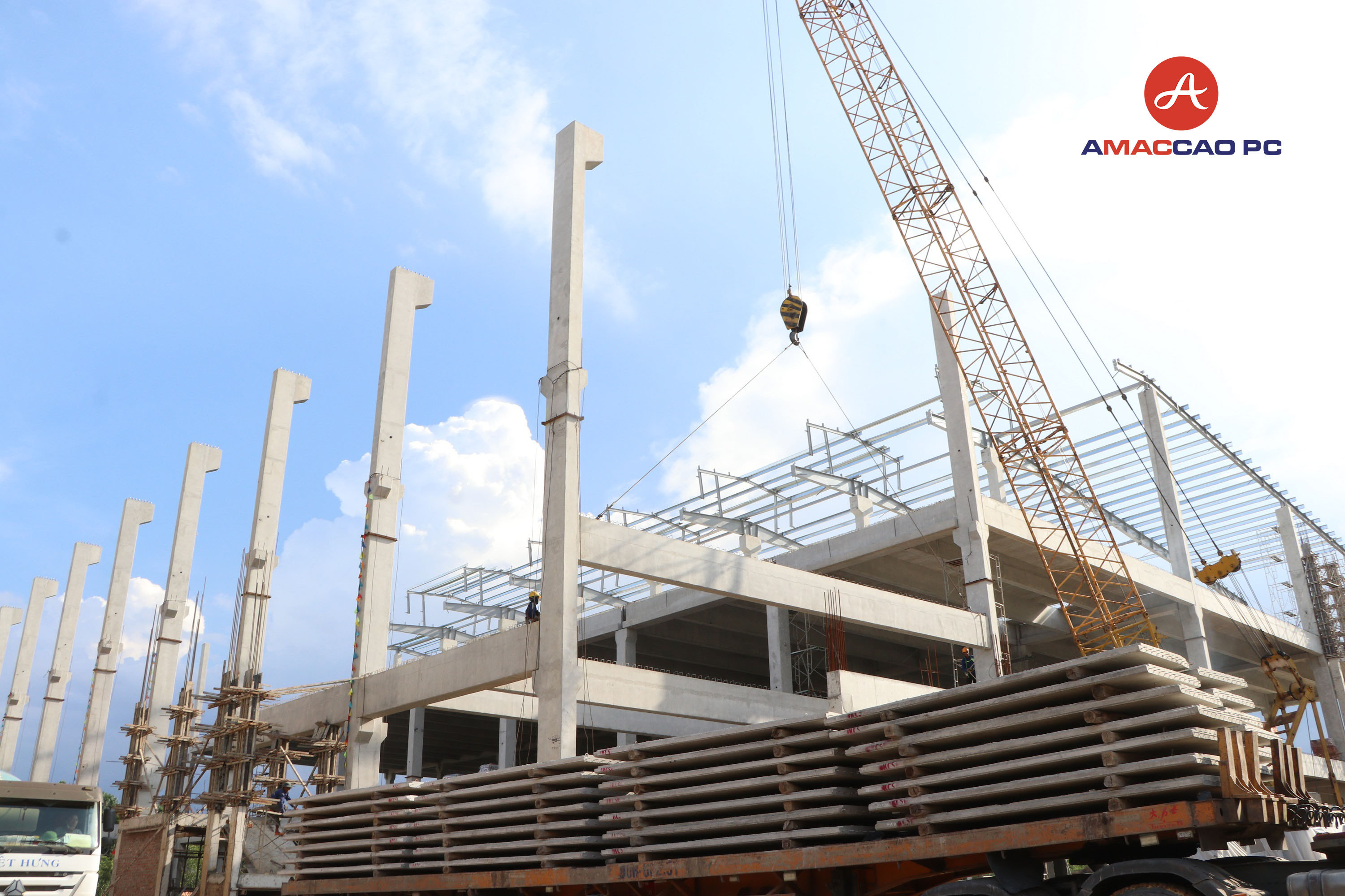 Với hợp đồng thực hiện tổ hợp nhà xưởng Á Châu, do kết cấu yêu cầu vượt khẩu độ để tạo nên không gian lớn, AMACCAO PC đã đưa ra giải pháp xây dựng bằng cấu kiện bê tông cốt thép dự ứng lực cường độ cao. Cáp dự ứng lực được kéo sẵn trong khối bê tông với chất lượng được kiểm soát ngay từ nhà máy, đưa đến công trường chỉ cần lắp ghép, giúp tiến độ được đẩy nhanh.