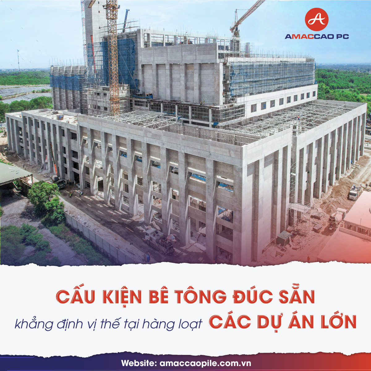 Trong dự án Nhà máy điện rác SERAPHIN, yêu cầu về mảng tường cao không kết nối dầm sàn khiến các biện pháp thi công tại chỗ rất tốn kém và không an toàn. Lúc này, giải pháp của AMACCAO PC là sản xuất cột và mảng tường đúc sẵn tại nhà máy rồi vận chuyển vào công trường lắp đặt theo thiết kế.