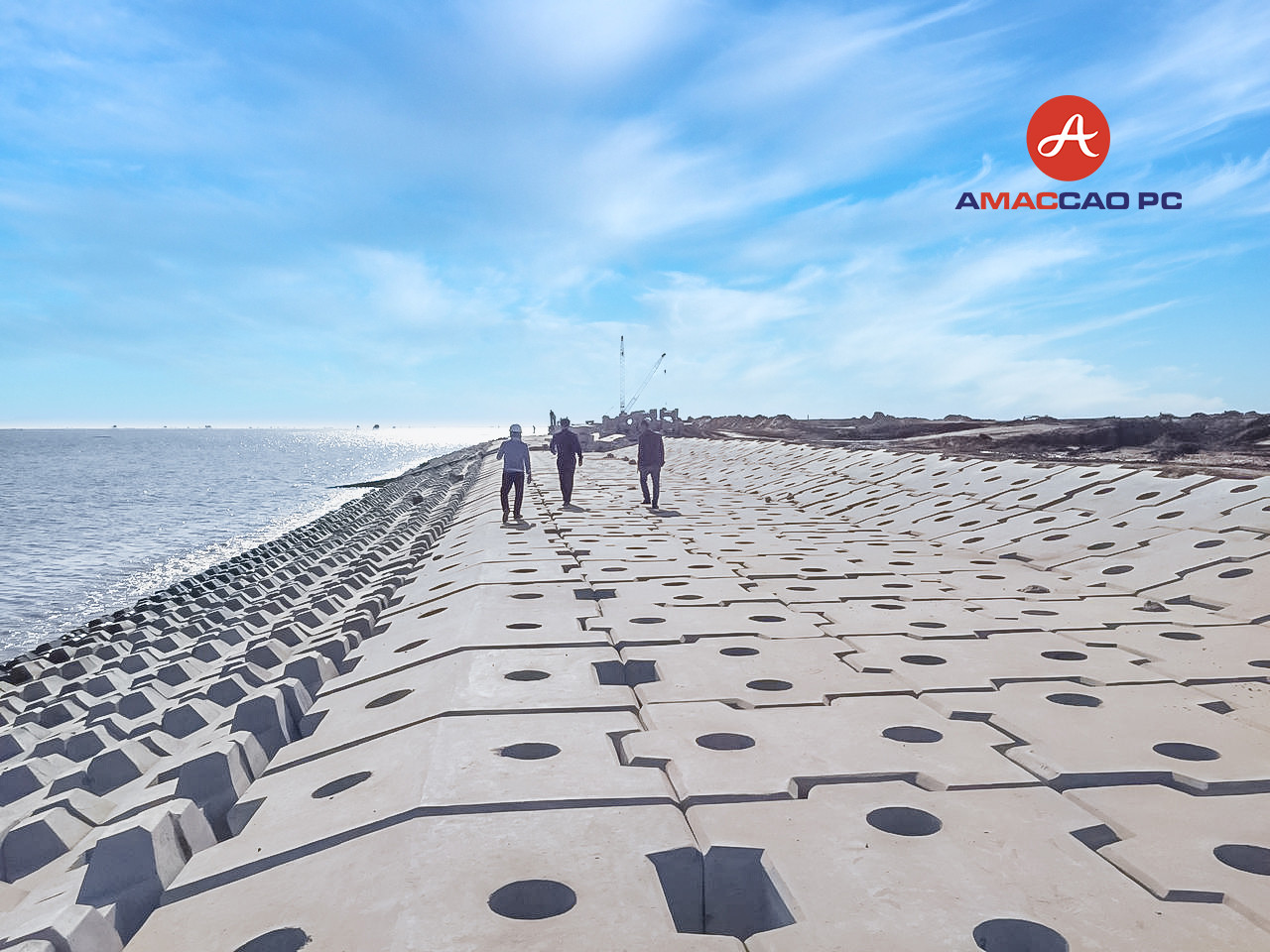 Trong khi đó, kè phá sóng đã chứng minh tính hiệu quả và độ bền cao khi thi công cho các bờ kè biển, các khu resort và khu đô thị ven biển. Các sản phẩm AMACCAO PC đã đăng ký hợp quy, hợp chuẩn về thiết kế, sản xuất, thi công đáp ứng các tiêu chí kỹ thuật, tiêu chuẩn TCVN 9114:2019. Riêng tấm trồng cỏ không chỉ có tác dụng chống sạt lở mà còn mang lại độ thẩm mỹ cao do có thể kết hợp các ô trồng cỏ tạo các mảng xanh.
