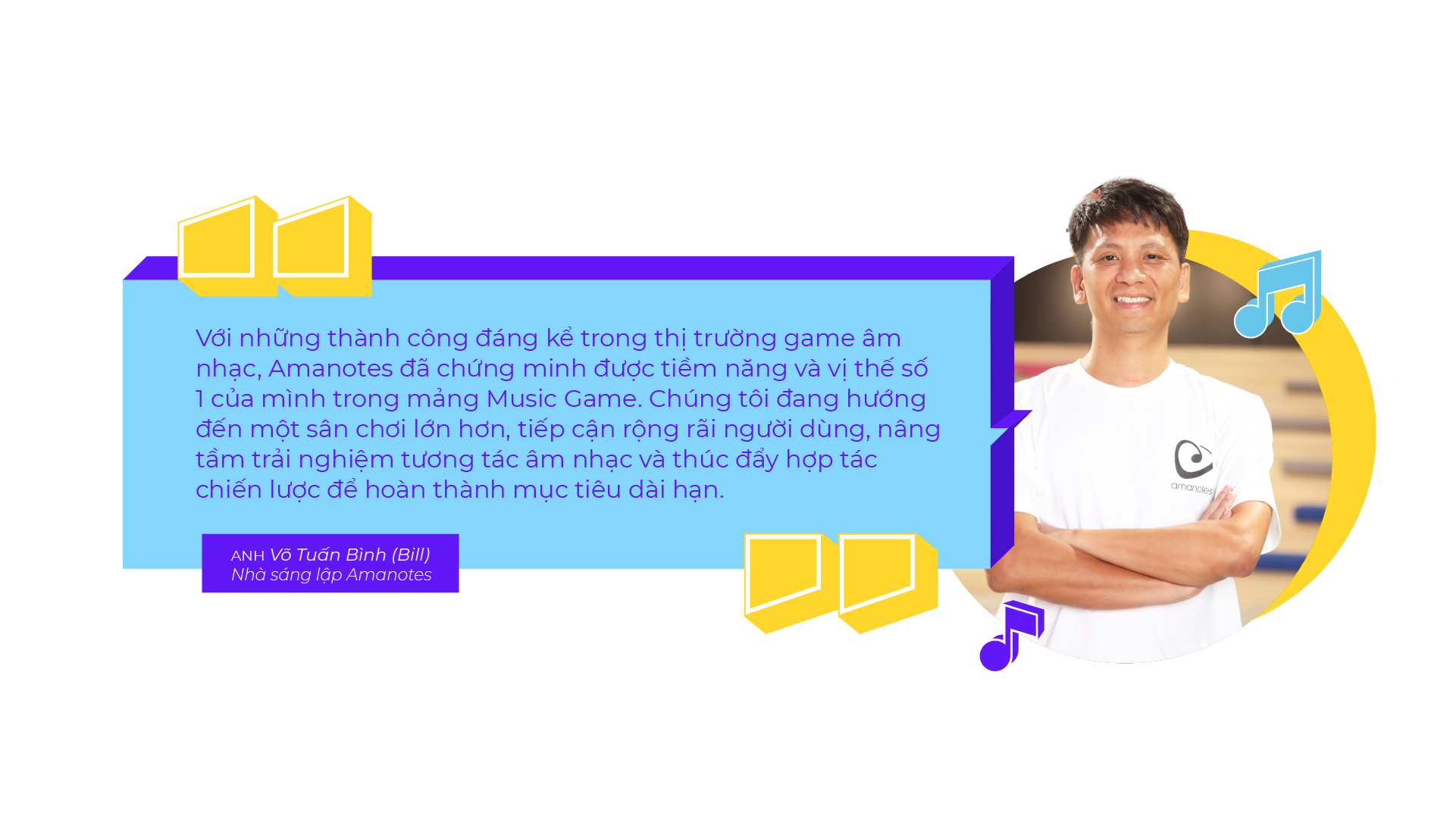 Gây dựng Amanotes từ con số 0 đến vị trí hàng đầu toàn cầu về lượt tải trên ngách game âm nhạc, nhưng hai nhà sáng lập Amanotes chưa dừng lại ở đó. Hệ sinh thái tương tác âm nhạc số 1 thế giới là đích đến tiếp theo mà Amanotes đặt mục tiêu chinh phục với khẩu hiệu "Everyone can music – Ai cũng tương tác được với âm nhạc" - nơi người dùng có thể chơi, học, sáng tạo và kết nối thông qua âm nhạc như hát karaoke, học nhạc lý, soạn ra bản nhạc…