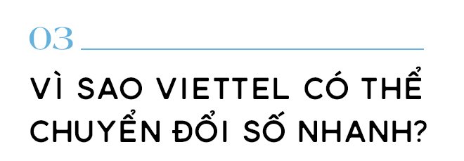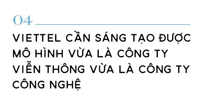 Viettel lớn nhưng về bản chất là công ty công nghệ rồi, các yếu tố nền tảng đã có sẵn. Vấn đề chỉ là chưa hình thành hệ sinh thái liên kết với nhau đúng chuẩn của công ty lớn. Nên bây giờ nhiệm vụ chỉ là hệ thống lại, thúc đẩy chuyển đổi thật nhanh thôi.