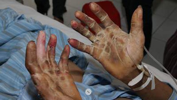 Bệnh nhân N.V.T ở Thanh Hóa hiện vẫn đang điều trị tại BV Bệnh nhiệt đới Trung ương, sau khi được chuyển đến đây cấp cứu gần 1 tuần trước trong tình trạng khá nguy kịch do ngộ độc thức ăn. Theo lời bệnh nhân này, ngày làm việc đầu năm, anh có rủ bạn bè đi ăn tiết canh để lấy “đỏ”, đây cũng là thói quen mà anh đã duy trì nhiều năm nay. Tuy nhiên, sau khi ăn tiết canh về anh bị sốt cao đột ngột kèm theo đi ngoài nhiều ngày. Khi vào viện, qua điều trị anh dần hồi tỉnh nhưng lại xuất hiện nhiều ban xuất huyết hoại tử trên người. Những nốt ban này lan rộng rất nhanh, từ chân rồi đến đầu, sau đó xuất hiện những triệu chứng của viêm màng não, buồn nôn. Các bác sĩ kết luận, anh bị liên cầu khuẩn lợn do ăn tiết canh.