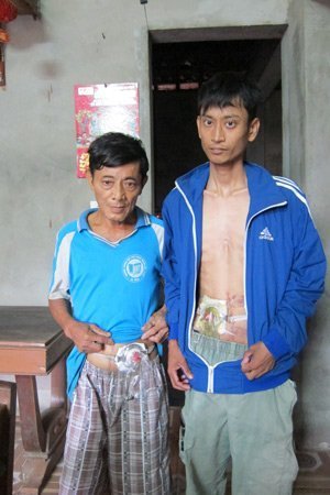 | Do căn bệnh ung thư trực tràng đã di căn nên hai cha con ông Hoàng phải mổ lắp van ở ổ bụng để bài tiết qua đó. |