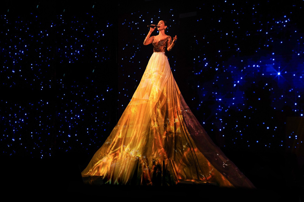 Tâm điểm của sự kiện là không gian tổ chức live concert “Đỉnh cao ngưỡng vọng”. Bước vào khán phòng với hệ đèn vòm khổng lồ, xung quanh là hệ thống màn sao kết hợp hiệu ứng led matrix, khách mời như được chìm đắm giữa ngàn ánh sao. “Nữ hoàng Bolero” Lệ Quyên và “Hoàng tử tình ca” Lê Hiếu xuất hiện trên sân khấu mở ra cuộc dạo chơi của những nốt ngân cảm xúc và câu chuyện về sự khác biệt của một công trình biểu tượng.
