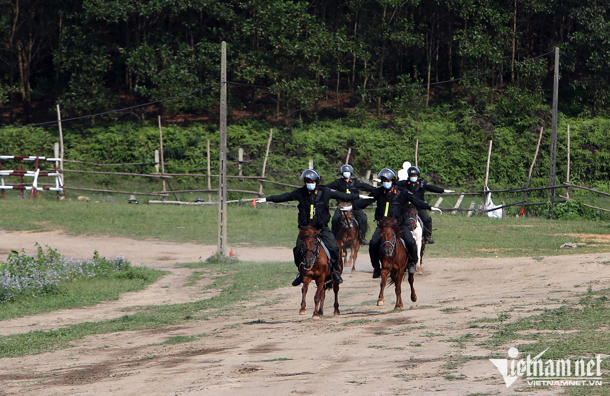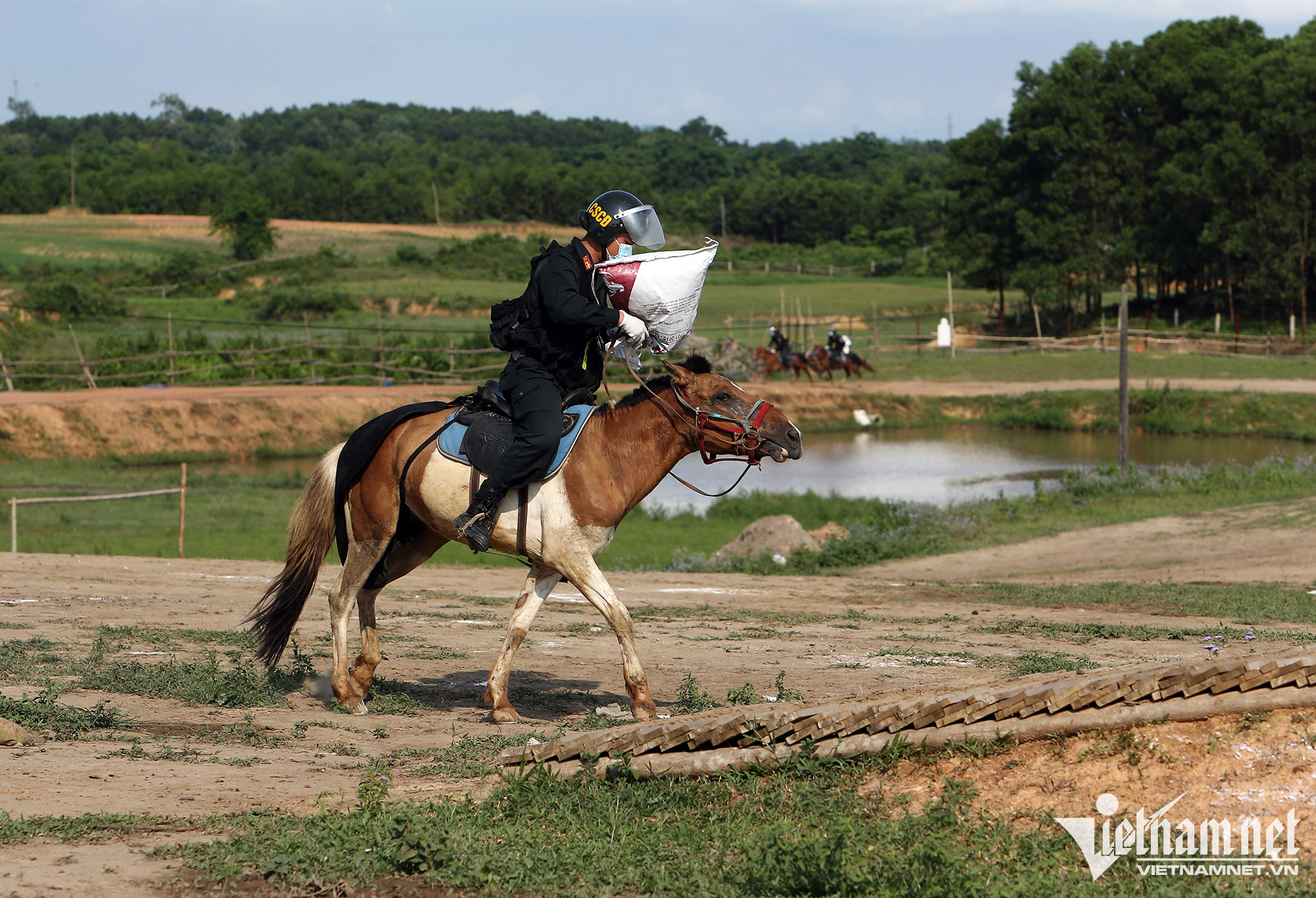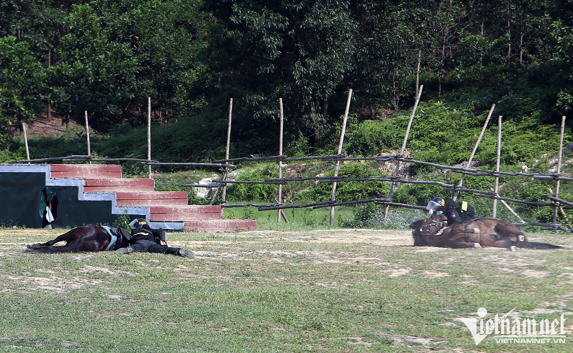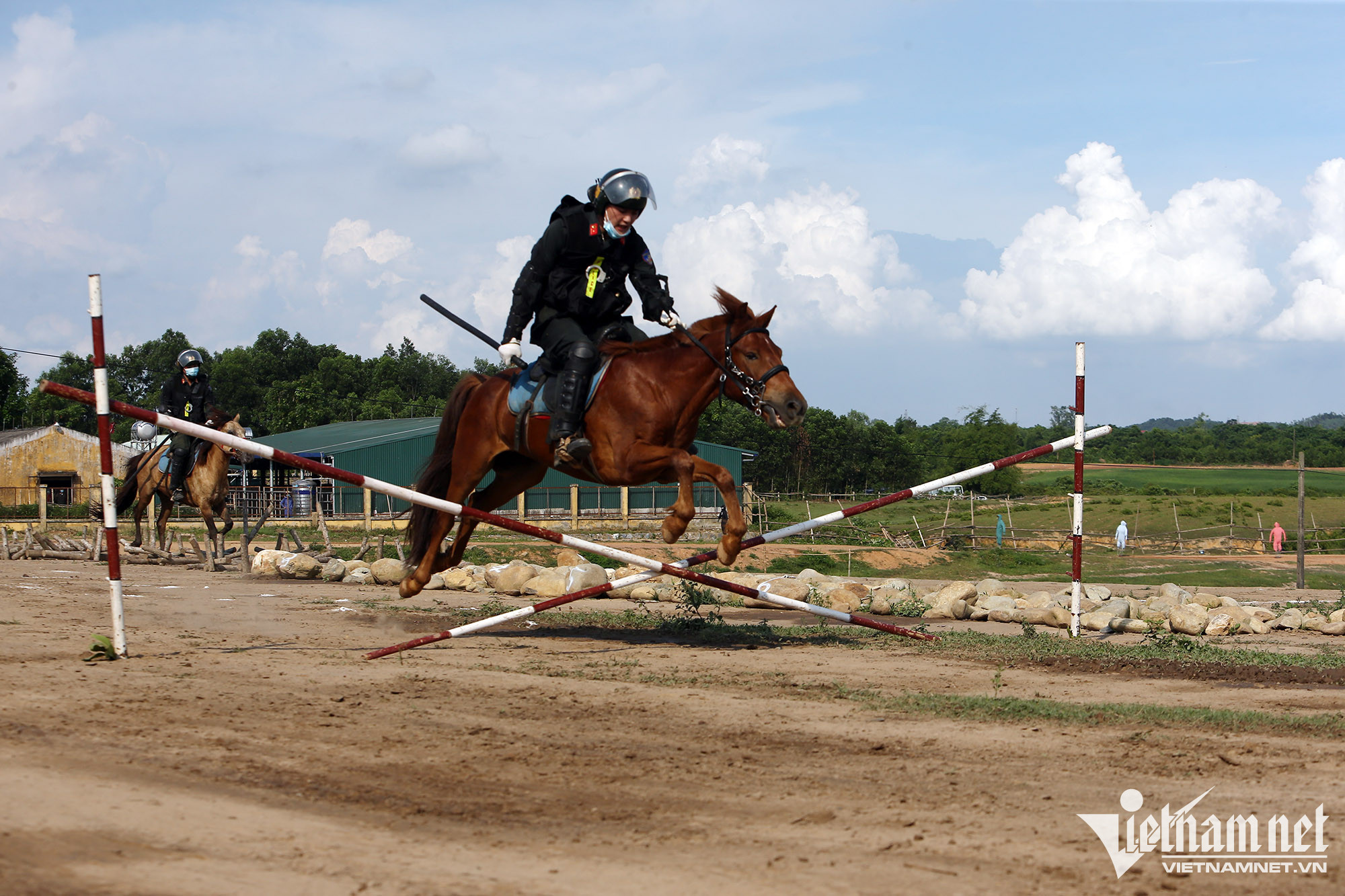 Ngựa ở Đoàn CSCĐ Kỵ binh đã được huấn luyện đi qua nhiều loại địa hình khác nhau, bài tập trấn áp tội phạm trên lưng ngựa đòi hỏi tổ hợp kỹ năng rất cao để cán bộ có thể làm chủ trên lưng ngựa.