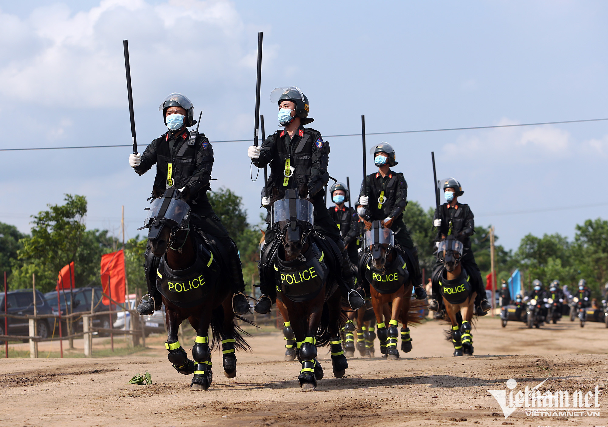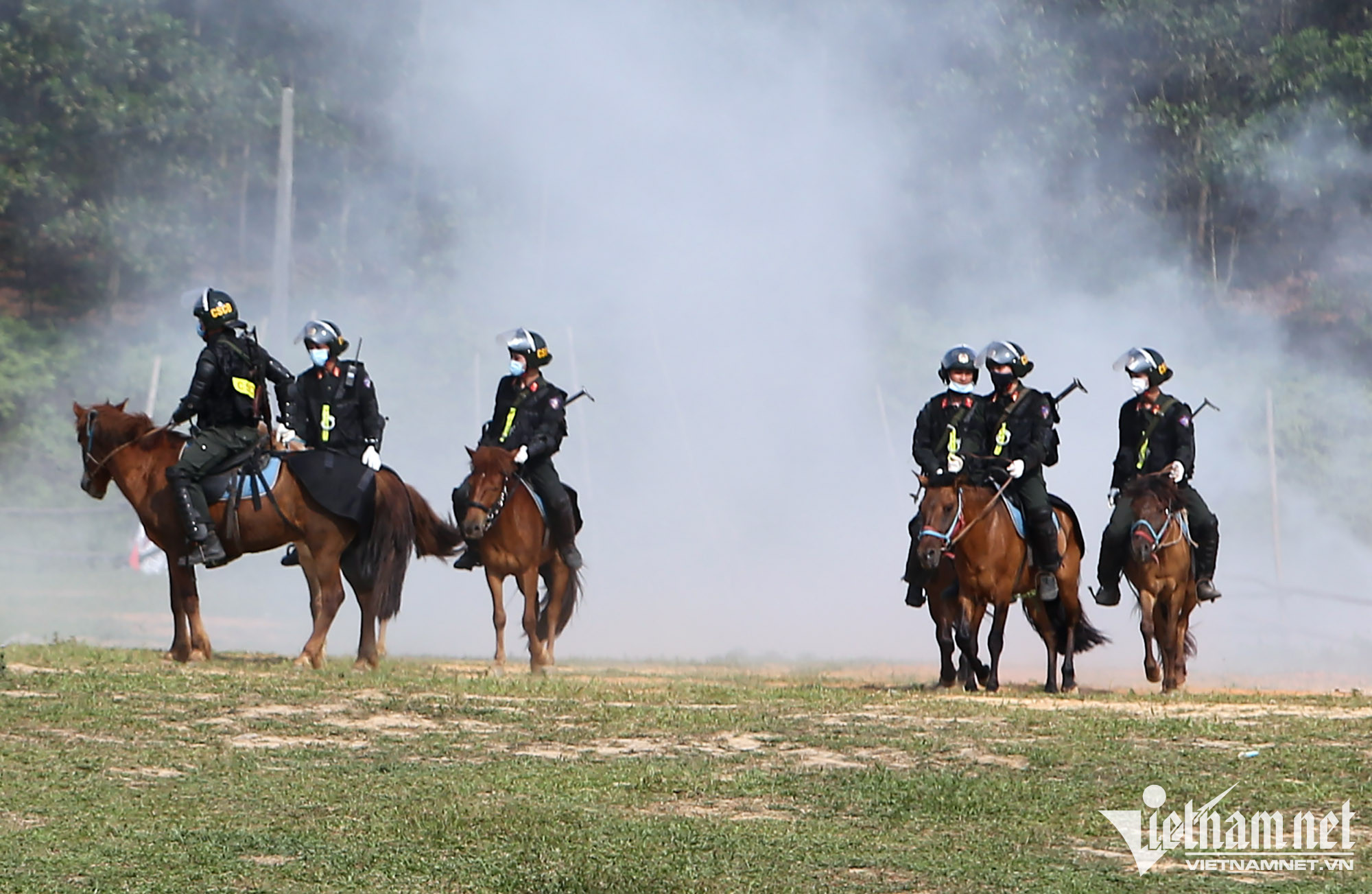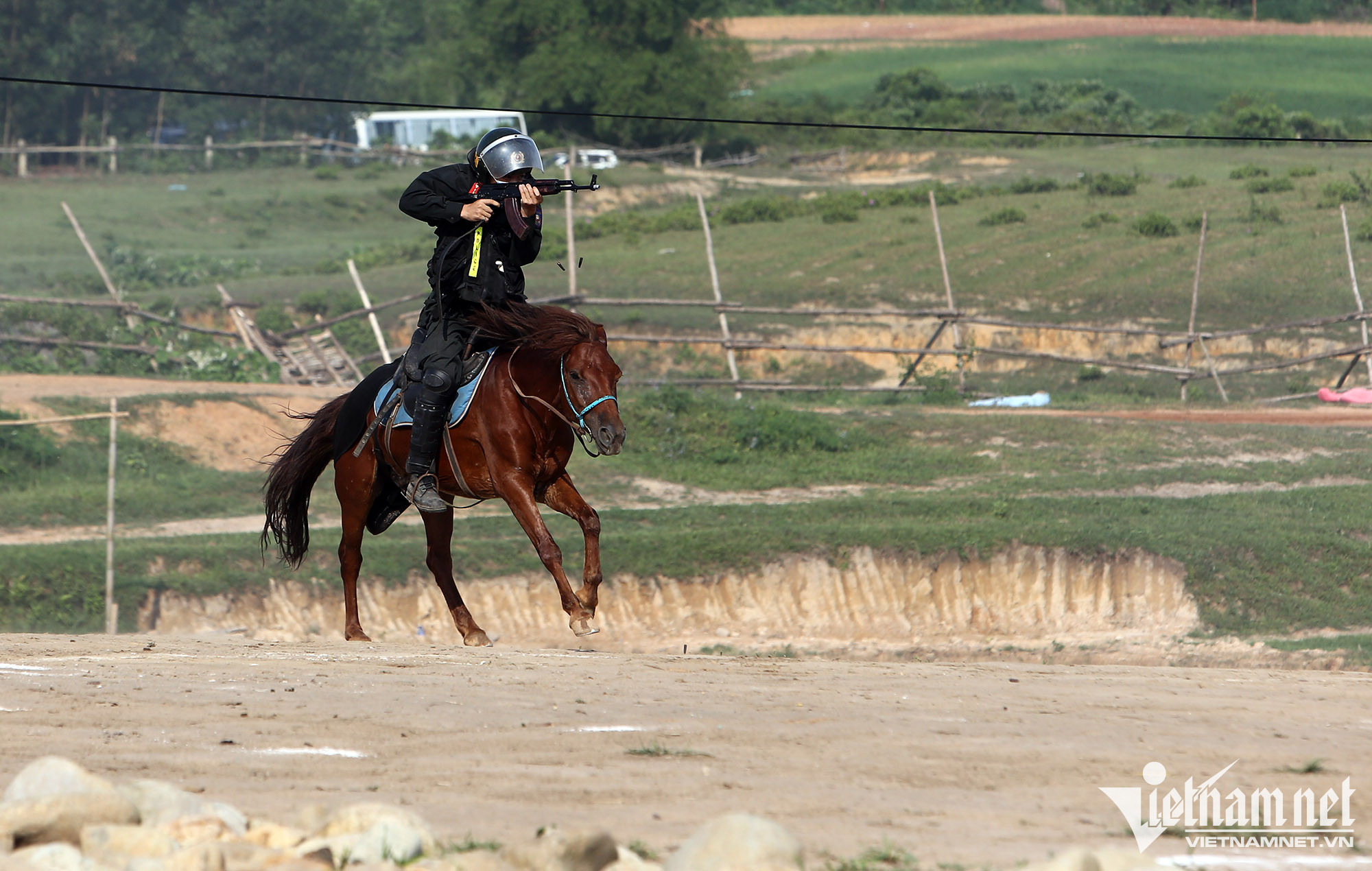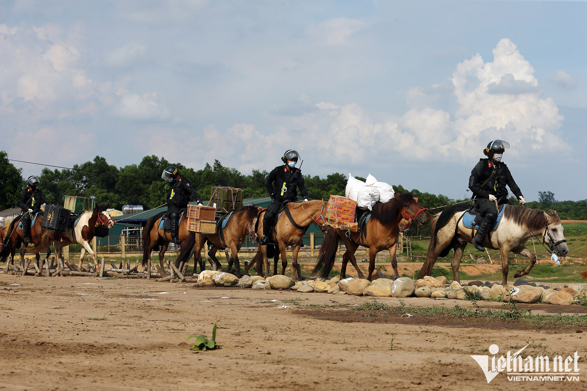 Ngựa ở Đoàn CSCĐ Kỵ binh đã được huấn luyện đi qua nhiều loại địa hình khác nhau, bài tập trấn áp tội phạm trên lưng ngựa đòi hỏi tổ hợp kỹ năng rất cao để cán bộ có thể làm chủ trên lưng ngựa.