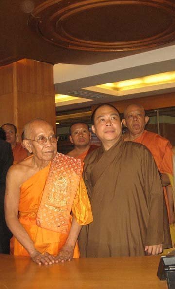 | Cư sĩ Từ Vân - Phạm Nhật Vũ (áo nâu, bên phải) trong buổi tiếp Đức Đại Tăng Thống Tep Vong - Vua Sãi Campuchia tại trụ sở của AVG, ngày 11/7/2012 |