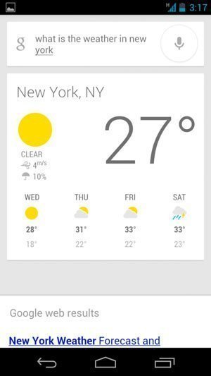 Tính năng này là câu trả lời của Google cho Siri của Apple. Tính năng Voice Search là phiên bản cải tiến của tính năng Voice Actions đã có từ lâu trên Android. Nó hoạt động như một "trợ lý" ảo, cung cấp các kết quả cho người sử dụng.