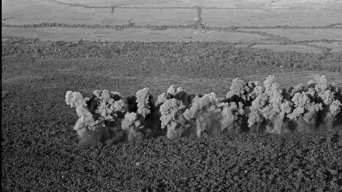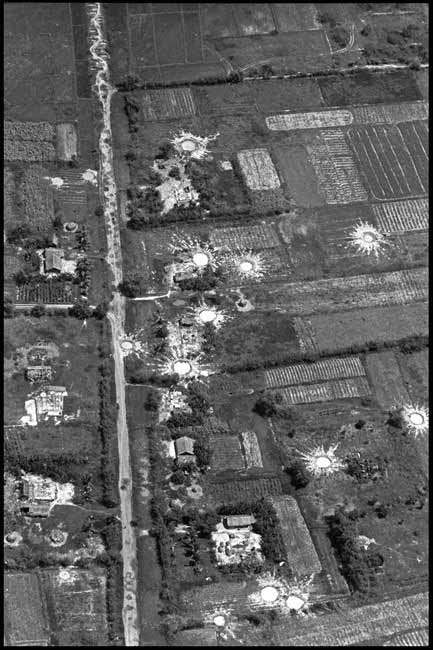 Ảnh chụp từ trên không một ngôi làng của Việt Nam sau khi bị dội pháo. Tháng