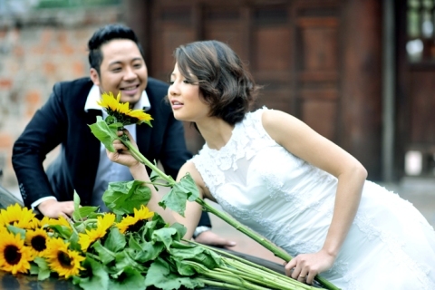 Mặc dù không muốn kể nhiều về đám cưới và luôn khẳng định rằng chú rể cũng bình thường như mọi người, nhưng cuối cùng thì cô dâu Trần Thị Quỳnh đã lộ diện bên chú rể đẹp trai Bùi Đình Hiệp.