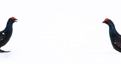 7. Bức ảnh hai con gà gô đen trống đang khiêu khích nhau trên tuyết của tác giả người Na Uy Aleksander Myklebust giành giải khuyến khích ở giải thường dành cho các nhiếp ảnh gia 15-17 tuổi. Aleksander đã phải mất 10 đêm trú ẩn trong tuyết lạnh giá để ghi được bức ảnh này.
