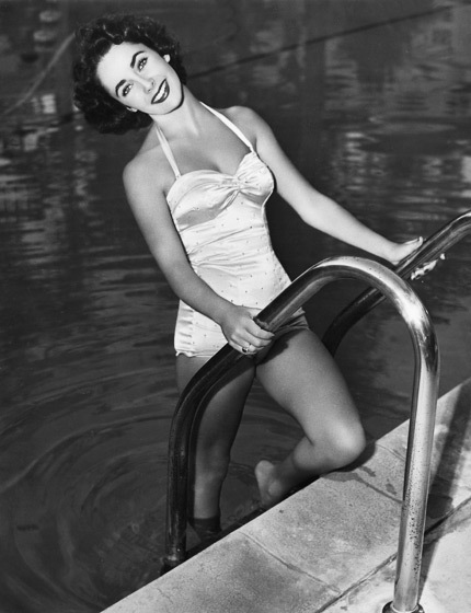 Liz gợi cảm bên bể bơi. Ảnh chụp năm 1949. Nguồn: MPTV.