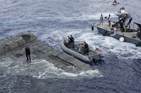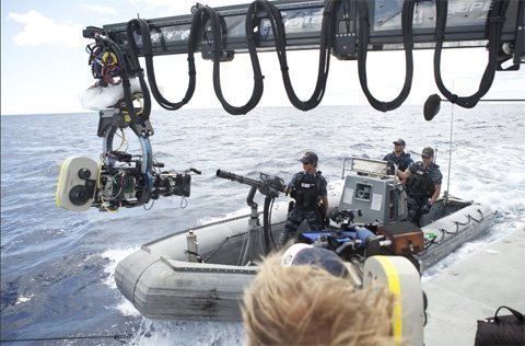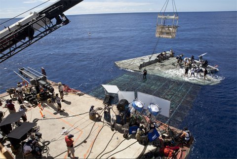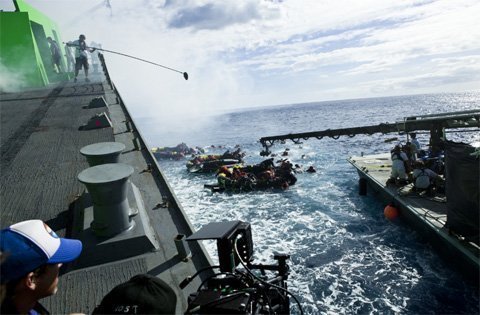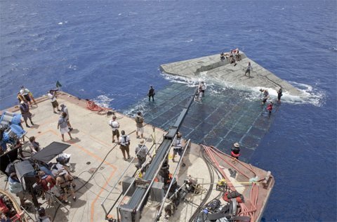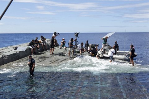 Các chuyên gia kĩ thuật của "Battleship" rất có kinh nghiệm khi thực hiện những cảnh quay quan trọng của bộ phim diễn ra trên đại dương ở độ sâu hàng trăm mét. Họ đã đưa ra một ý tưởng mà họ chưa thử bao giờ. Đó là thuê một chiếc xà lan có chiều dài tương đương một sân bóng đá và đưa nó ra biển.