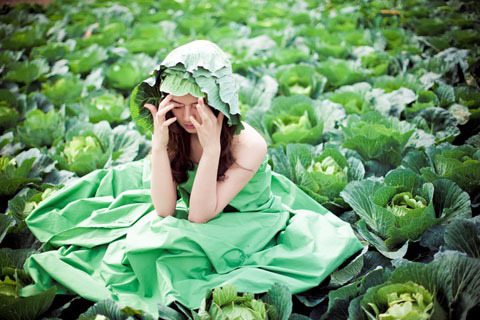 "Vài lần đi qua bãi giữa sông Hồng, từ trên cây cầu Long Biên tôi nhìn xuống thấp ruộng bắp cải xanh mướt, tròn lẳn thật đáng yêu. Thế rồi đến hôm đi chụp thì bắp cải đã được người dân thu hoạch gần hết. Ekip cố đi, thế rồi may quá vẫn còn một ruộng cải. Thế là bộ ảnh được hoàn thành".