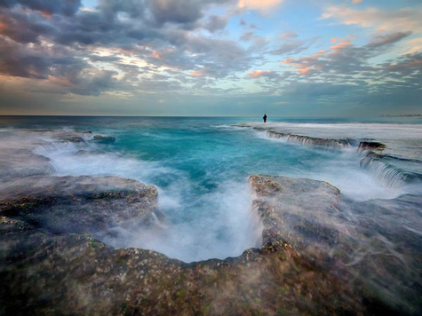 Một người câu cá đứng một mình trên mép của mui đá trên bờ điển Palmachim, Israel khi những con sóng biển dạt qua chân anh ta trong bức ảnh của nhiếp ảnh gia Ilan Shacham, Modiin, Israel. “Chàng trai đứng đó một mình cho ta cảm giác cô đơn trước sức mạnh của những con sóng dạt qua thềm đá.” Westergren bình luận về giải khuyến khích này.