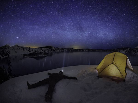 Tác phẩm ảnh giành giải nhất có tên ‘Nằm ngửa ngắm sao’ của nhiếp ảnh gia Ben Canales. Trong bức ảnh, Ben Canales nằm ngửa trên tuyết dưới trời đầy sao ở Công viên quốc gia hồ Crater, bang Oregon, Mỹ. Bức ảnh sử dụng kỹ thuật phơi sáng lâu và chụp hẹn giờ. Ông Dan Westerngren, biên tập lâu năm tạp chí Traveler, chủ tịch ban giám khảo năm nay đánh giá cao tính hài hước trong bức ảnh chiến thắng này.