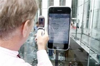 Một người khách qua đường đang chụp ảnh hình điện thoại iPhone hôm 25/6/2007. Ảnh: Reuters. |