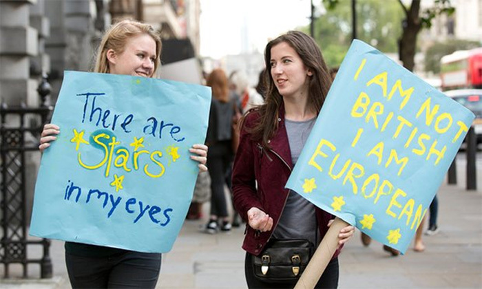 Dân châu Âu khóa môi mời Anh ở lại EU
