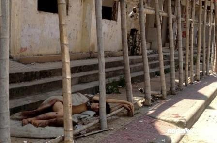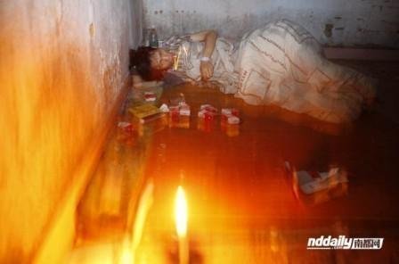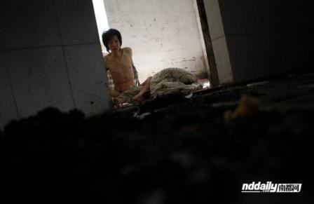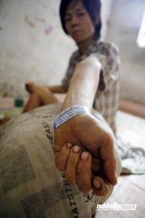 Trưa ngày 22/4, Wu nằm vật vạ trên đường Lianhua, Huidong. Mảnh chăn đắp hờ để lộ tấm thân tàn tạ. Wu yếu ớt tới mức không thể đứng dậy đi được.