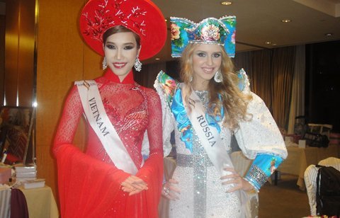 Anh Thư (á hậu 4) và á hậu 2 người Nga