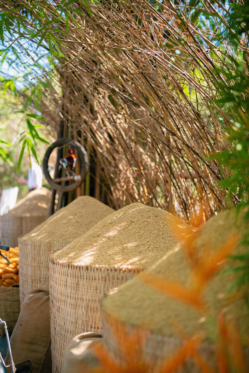 Ngô, lúa cũng được đem ra trang trí đám cưới. Hoa thiên điểu nở rực khiến không gian cưới thêm sắc màu