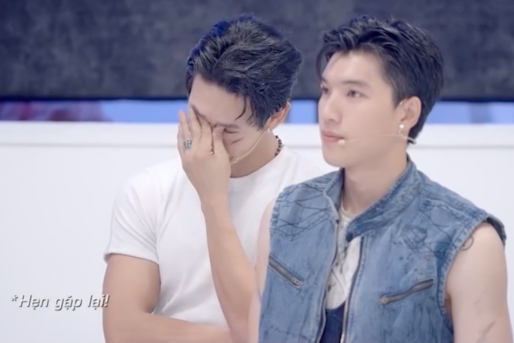 Song Luân, đội trưởng tiết mục "You", không kìm được nước mắt khi rapper Tage bị loại. Cả hai gây xúc động khi ôm chầm lấy nhau để chia tay.