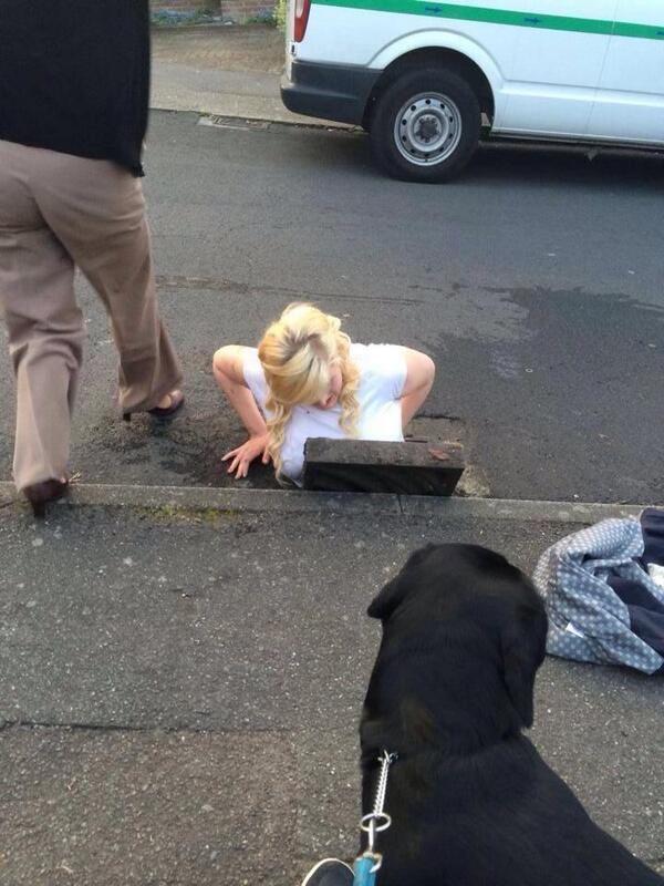 Ella Birchenough, 16 tuổi, cho biết chiếc iPhone bị tuột khỏi tay khi định cất vào túi áo. Vì không muốn đánh mất điện thoại, cô bé đã chui xuống cống để tìm và vớt nó lên, tuy nhiên, chui vào thì dễ chui ra thì khó, Birchenough đã bị mắc cống. Những người qua đường khác không giúp gì cho cô bé gặp sự cố, thay vào đó dùng smartphone trong tay để chụp lại ảnh.