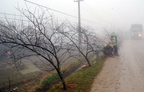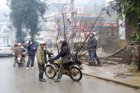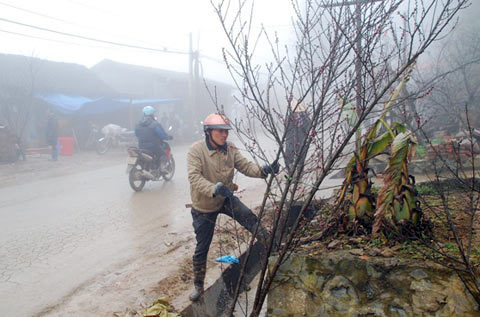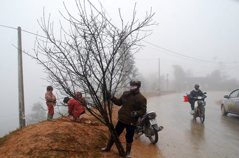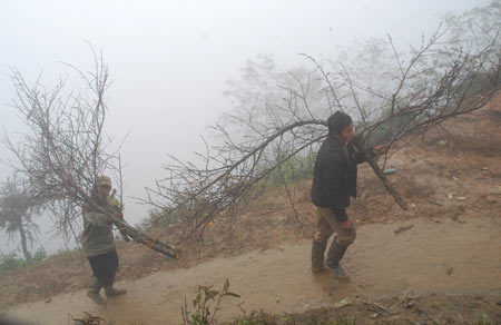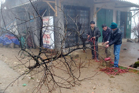 Nắm bắt nhu cầu chơi hoa đào núi của người miền xuôi, thương lái mua gom, dùng dây ni lông quấn chặt cành và nụ hoa để tránh gãy rụng, đưa lên ô tô chở về Hà Nội, Hải Phòng, Quảng Ninh... bán kiếm lời.