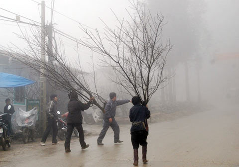 Đào núi Sa Pa đang nhộn nhịp xuống phố, làm đẹp ngày tết cổ truyền.