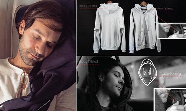 Dù đang ở trên máy bay, tàu hỏa hay ô tô, việc di chuyển thường làm chúng ta cảm thấy buồn ngủ. Tuy nhiên, việc dùng thêm một chiếc áo hay túi làm gối để ngả đầu không phải là lựa chọn tốt nhất cho sự thoải mái. Các nhà sáng chế đã nghĩ ra một loại áo có mũ "2 trong 1", tích hợp thêm cả tính năng gối bơm hơi để giúp người mặc chợp mắt vài phút, dù họ ở bất kỳ đâu.