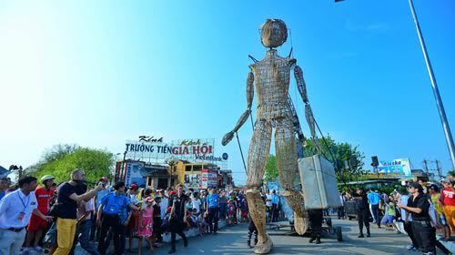 Rối khổng lồ sải bước ở trung tâm TP. Huế