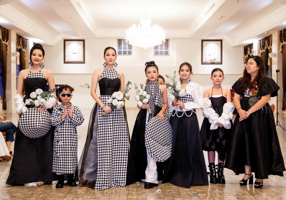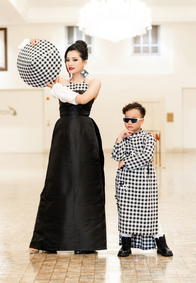 Còn bộ sưu tập Check được lấy ý tưởng từ caro và khăn rằn Nam Bộ. Nhà thiết kế đã sáng tạo phá cách trên nền chất liệu gam màu trắng và đen, khéo kết hợp giữa truyền thống và hiện đại.