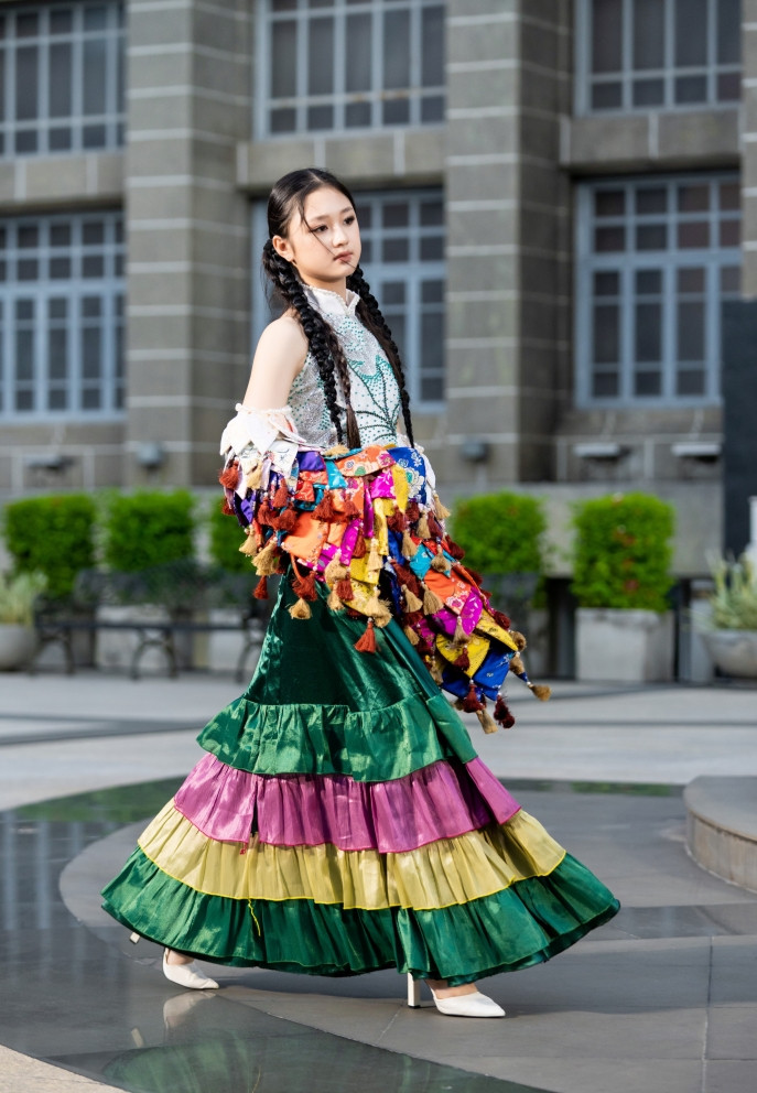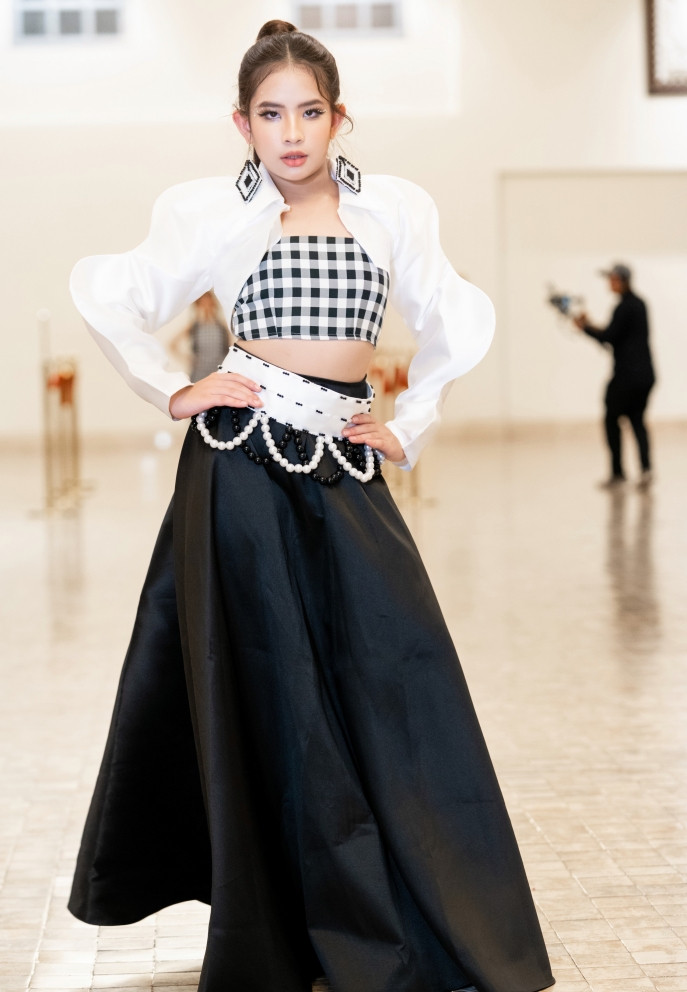 Mẫu nhí tự trình diễn mà không có sự trợ giúp của các bạn nâng tà như lần trình diễn ở Việt Nam. Trước show diễn cô bé suýt khóc vì cảm thấy lo lắng và áp lực. Tuy nhiên cô sau đó lấy bình tĩnh, nỗ lực mang đến tiết mục trọn vẹn.