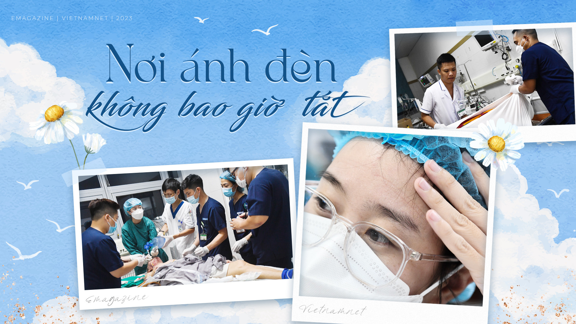 "Ở đây thì ngày hay đêm quan trọng gì, cũng chẳng khác gì nhau. Nếu có cũng chỉ là phía cửa sổ, xem trời nắng hay tối mù, đen kịt vì đêm", bác sĩ nội trú Phan Kim Lê (28 tuổi) nói sau khi làm thủ thuật cho một ca bệnh mới tiếp nhận. Lúc này đồng hồ vừa điểm 3h sáng. Sau thời gian đào tạo y khoa tại Đại học Y khoa Vinh, Lê vượt qua kỳ thi tuyển chọn bác sĩ nội trú tại Đại học Y Hà Nội. Từ năm 2021 đến nay, cô gái gắn bó với công việc bác sĩ nội trú tại Trung tâm Hồi sức tích cực, Bệnh viện Bạch Mai (Hà Nội).