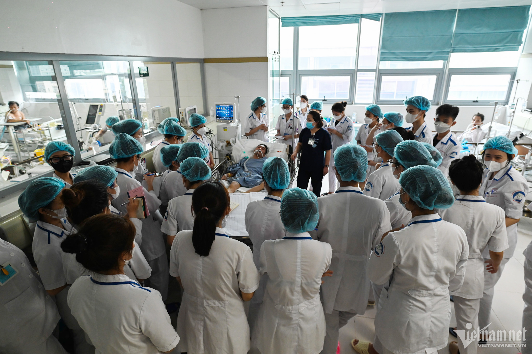 7h, một ngày làm việc mới lại tiếp tục guồng quay với khối lượng công việc khổng lồ. Đỡ hơn một chút so với ban đêm bởi có thêm đội ngũ thực tập sinh, là những nhân lực y tế chất lượng cao, nguồn chất lượng cao của địa phương, đến học việc. Một vài em cứng việc được giao hỗ trợ điều dưỡng chăm sóc các giường bệnh, hỗ trợ ăn sáng hoặc phụ giúp bác sĩ lấy máu, thay băng. Mỗi kỳ thực tập, khoa tiếp nhận cả trăm sinh viên lui tới. Học việc tại Trung tâm Hồi sức tích cực của viện Bạch Mai luôn là lựa chọn hàng đầu của rất nhiều bạn trẻ bởi được chứng kiến tận mắt cuộc chiến khốc liệt nơi phòng bệnh.